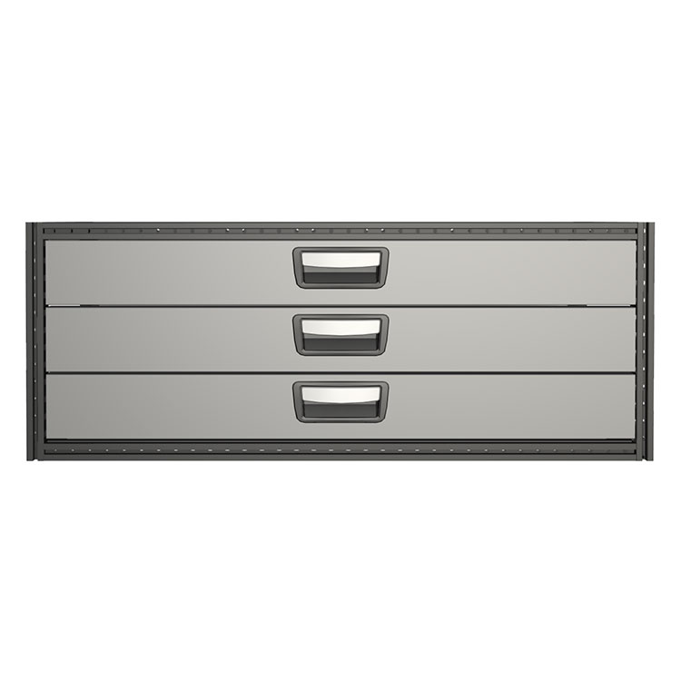 Een lade is standaard uitgerust met kogellagerrails. Max. belasting: 50 kg per lade, totaal max. 150 kg per ladeblok. De laden kunnen 100% worden uitgetrokken en zijn voorzien van veiligheidsstoppen. Om het ladeblok optimaal te benutten, kan het worden voorzien van accessoires zoals schuimplastic inlegvellen, plastic inzetbakken en verdeelschotten. Voor een optimale gewichtsbalans kunt u optioneel gebruikmaken van dekplaten en gereedschapspanelen.