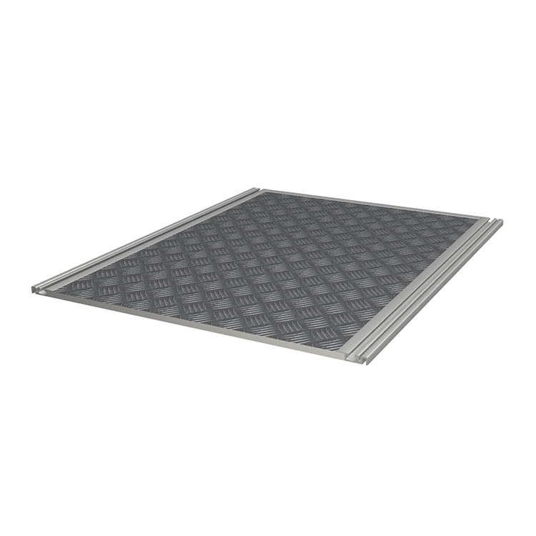 Licht en robuust laadplatform dat perfect op het uitschuifbare basisframe past. Het platform is gemaakt van een licht sandwichmateriaal en wordt geleverd met een aluminium topplaat.