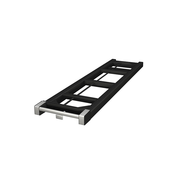 Licht en robuust basisframe van ultrasterk staal met een front van geanodiseerd aluminium. Er kan een laadplatform op het basisframe worden gemonteerd voor extra functionaliteit.