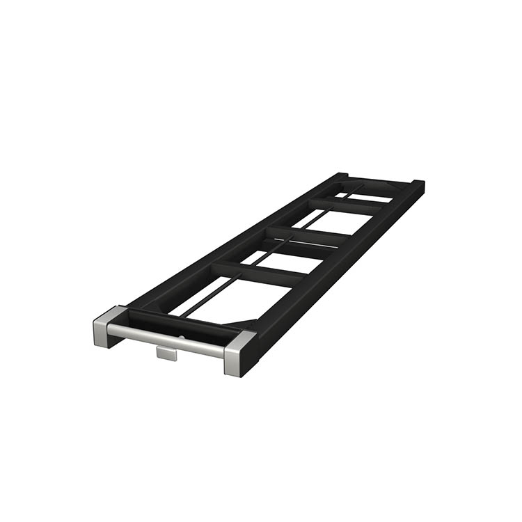 Licht en robuust basisframe van ultrasterk staal met een front van geanodiseerd aluminium. Er kan een laadplatform op het basisframe worden gemonteerd voor extra functionaliteit.