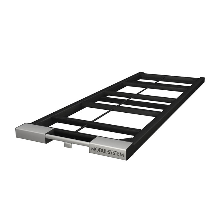 Licht en robuust basisframe van ultrasterk staal met een front van geanodiseerd aluminium. Er kan een laadplatform op het basisframe worden gemonteerd voor extra functionaliteit.