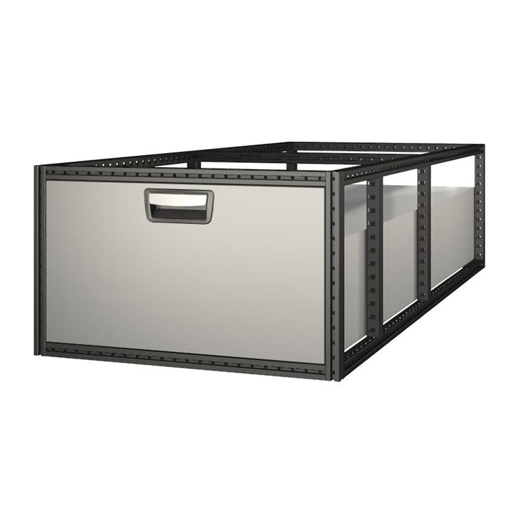 De extra diepe ladeblokken hebben een frame van ultra-hogesterktestaal en laden van aluminium. De laden zijn standaard uitgerust met kogellagers. De mix van vaste en flexibele lagers maakt ze zowel stabiel als eenvoudig te gebruiken.