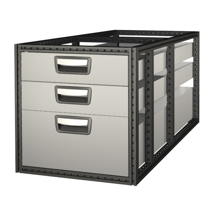 De extra diepe ladeblokken hebben een frame van ultra-hogesterktestaal en laden van aluminium. De laden zijn standaard uitgerust met kogellagers. De mix van vaste en flexibele lagers maakt ze zowel stabiel als eenvoudig te gebruiken.