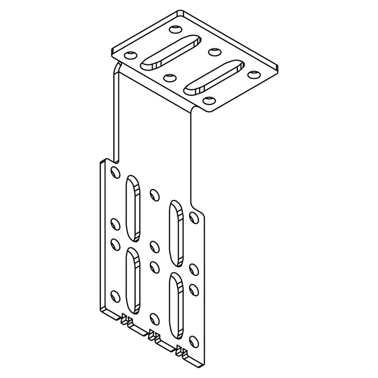Universele beugel voor de wandbevestiging van ladeblokken, legborden, kasten enz. Afgestemd op de meeste montagesituaties.