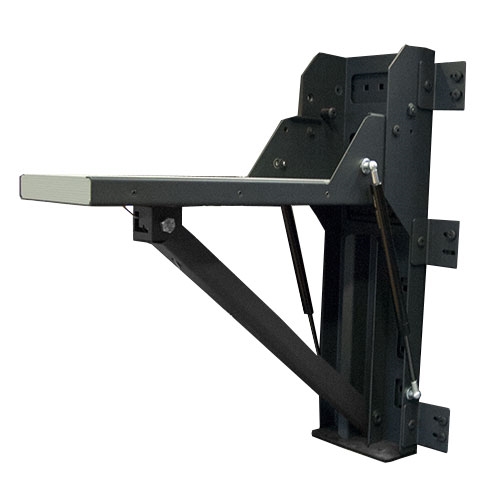 Neerklapbare werkbank voor bankschroef met robuust design. Dankzij het ergonomische design met dubbele gasveren kan het platform met één hand worden neergeklapt en in positie vergrendeld worden. Het platform neemt maar weinig plaats in de laadruimte in als het niet wordt gebruikt.