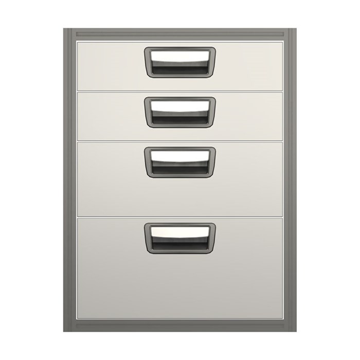Een lade is standaard uitgerust met kogellagerrails. Max. belasting: 30 kg per lade, totaal max. 100 kg per ladeblok.