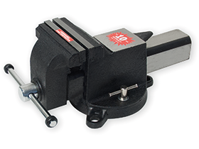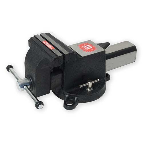 Gietstalen stalen bankschroef met een kaakbreedte van 125 mm. Draaischijf die 360 graden kan draaien en geïntegreerde pijpklem zijn inbegrepen.