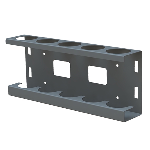 Houder voor 5 spuitbussen, met een max. diameter van 50mm. De houder kan worden bevestigd aan een legbordjuk of tegen de zijwand.