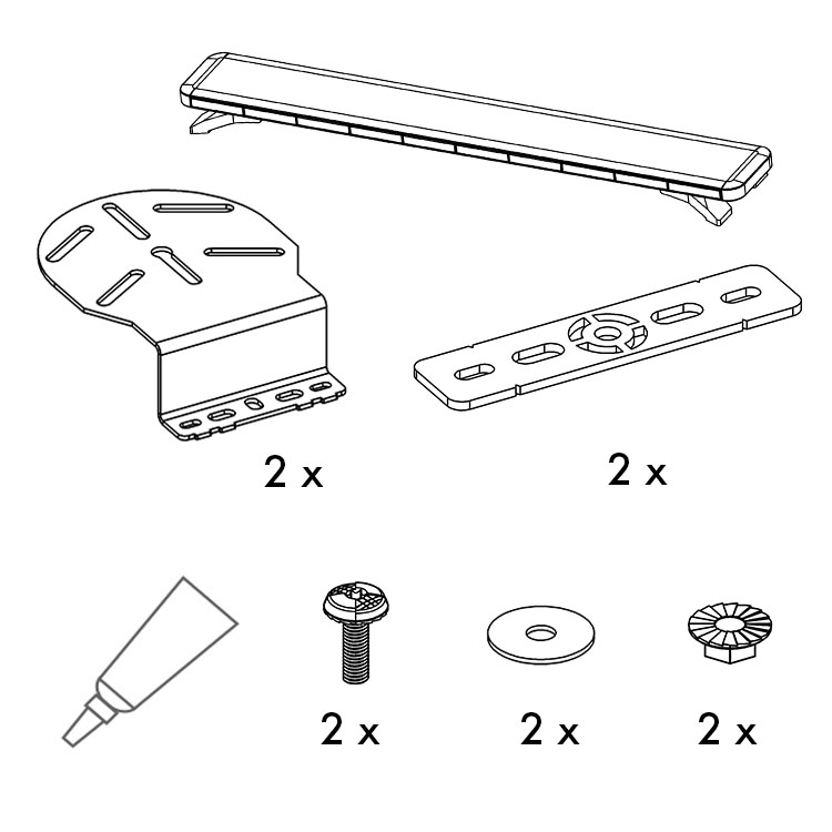 Kit bestaande uit een verlichtingsbalk en een complete set beugels voor rechtstreekse installatie op de OEM-bevestigingspunten van het voertuig. Door de geïntegreerde bevestigingspunten te gebruiken, hoeven er geen onnodige gaten in het voertuig te worden geboord, zodat er geen risico van corrosie is en de restwaarde van het voertuig wordt beschermd.
