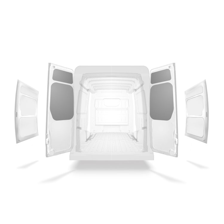 Deze voorgesneden achterportierbekleding voor bestelwagens is op maat ontworpen voor de bovenste gedeelten van de dubbele deuren van het voertuig.