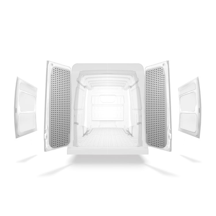 Designed to cover the inside of the rear doors, these tool boards create an efficient storage space for tools and other equipment.